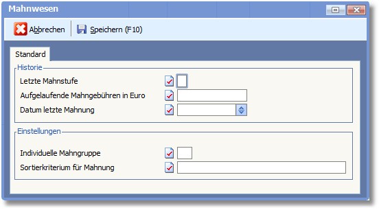 Diese Felder zeigen die Daten der letzten Mahnung an.