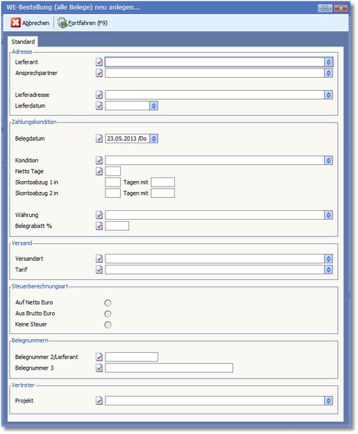 Das Programm öffnet den Dialog zur Erfassung eines neuen Bestellbelegs.