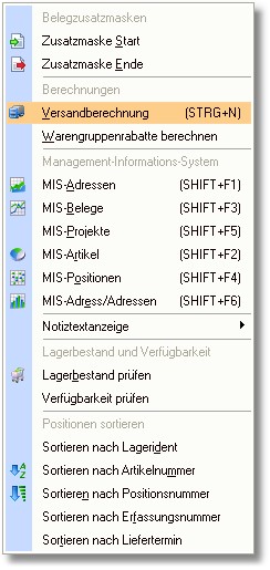 3. Rufen Sie über die [SHIFT]+[F10]-Taste das Pop-Up-Menü auf und klicken Sie mit der Maus auf den Menüeintrag "Versandberechnung"