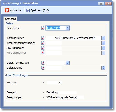 In dieser Maske werden die Belegkopfdaten bearbeitet.