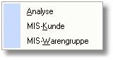 In der Tabelle "Adress/Warengruppen" können Sie die Kondition einer Adress/Warengruppe suchen und über den Button <Auswertung> oder mit der Taste [RETURN] öffnet sich ein Popup-Menü mit folgenden Analysemöglichkeiten: