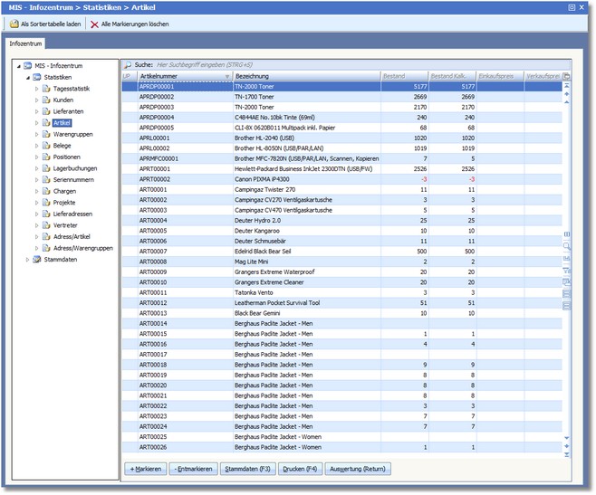 << Hier KLicken um eine Inhaltsübersicht anzuzeigen >> Navigation: Warenwirtschaft > Auswertungen > Informationszentrum > MIS-Infozentrum > Artikel |