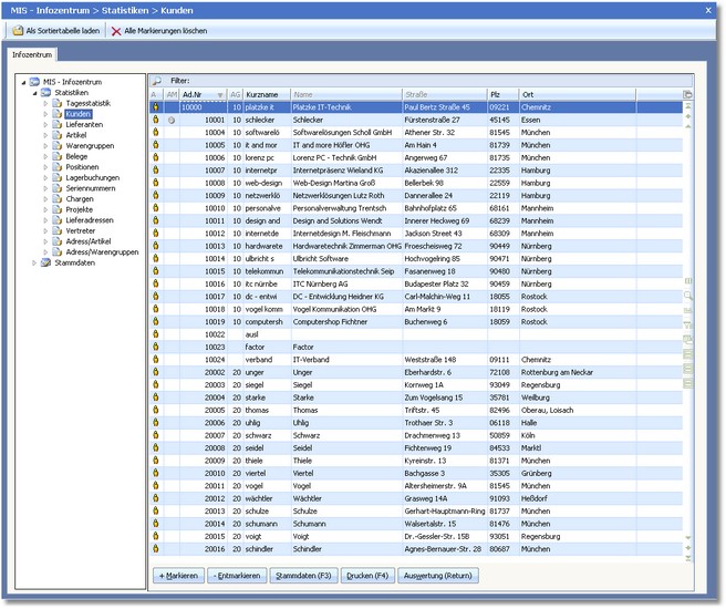 In diesem MIS-Bereich öffnet sich die zentrale Adressbearbeitung der Kunden.