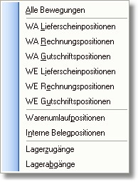 Über diesen Button können Sie die einzelnen Artikelbewegungen auflisten, die mit der gewählten Seriennummer erfasst wurden. Zuvor können Sie in einem Pop-Up-Menü auswählen,
