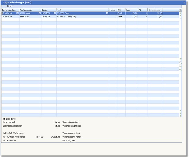Die Buchung der Lagerabgänge erfolgt analog der Lagerzugänge und wird in der Positionserfassung des Warenausgangs beschrieben.