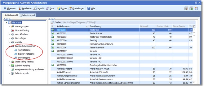 Nachdem ein Marketplace angelegt wurde, steht im Artikelstamm eine neue Kategorienauswahl pro Katalog im Verzeichnisbaum zur Verfügung: