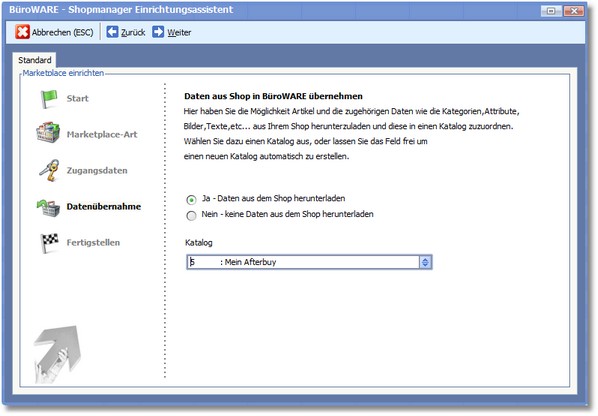 Bei Auswahl dieser Option wird nur der Marketplace angelegt, es erfolgt dabei kein Download der Artikeldaten.