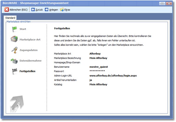 So richten Sie einen Afterbuy-Marketplace mit dem Shopmanager-Einrichtungsassistenten ein: