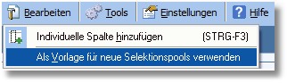 Wird diese Funktion aktiviert, werden sämtliche Einstellungen (Spalten, Sortierung, Gruppierung…) automatisch für jeden neu angelegten Selektionspool übernommen.