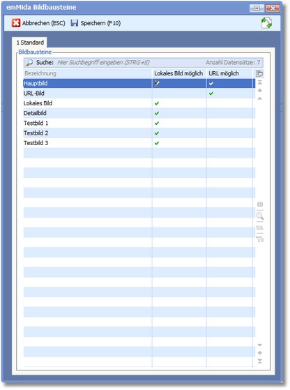 Hier wird die Zuweisung der Bildbausteine in der BüroWARE angezeigt und erfasst.