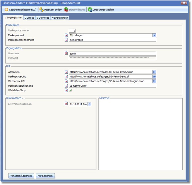 << Hier KLicken um eine Inhaltsübersicht anzuzeigen >> Navigation: Warenwirtschaft > Extras > Shopmanager > Marketplaces > ePages > Marketplace verwalten |