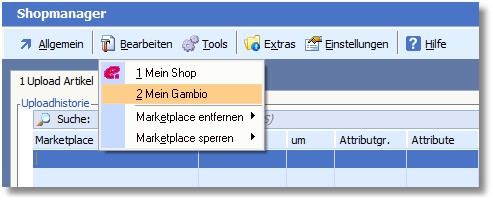 << Hier KLicken um eine Inhaltsübersicht anzuzeigen >> Navigation: Warenwirtschaft > Extras > Shopmanager > Marketplaces > Gambio > Marketplace verwalten |