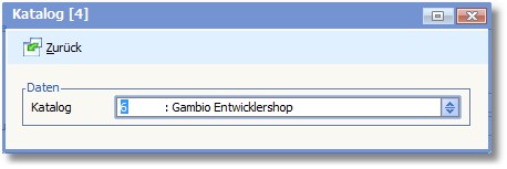 In diesem Feld wird der Katalog angezeigt, welcher bei der Einrichtung des Marketplaces angelegt wurde und im Verzeichnisbaum des Artikelstamms angezeigt wird. [F5] öffnet hier die Katalogauswahl.