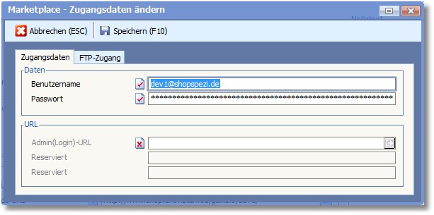 In dieser Optionsmaske werden die für den Marketplace hinterlegten Zugangsdaten angezeigt und können in den jeweiligen Feldern direkt bearbeitet werden.