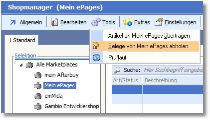 So können Sie manuell Belege von Ihrem ePages-Shop abholen: