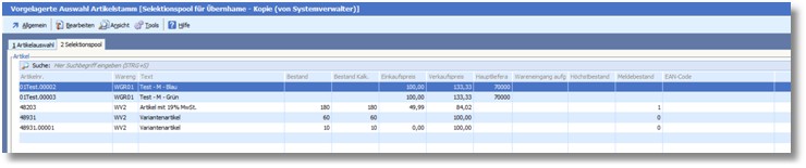 << Hier KLicken um eine Inhaltsübersicht anzuzeigen >> Navigation: Warenwirtschaft > Stammdaten > Selektionspools > Neuerungen Selektionspool > Selektionspool übernehmen |