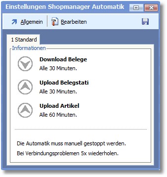 << Hier KLicken um eine Inhaltsübersicht anzuzeigen >> Navigation: Warenwirtschaft > Extras > Shopmanager > Shopmanager-Automatik |