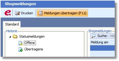Startet die Übertragung vorhandener Meldungen aus dem Shop in die BüroWARE.