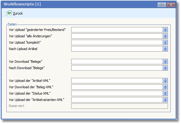 << Hier KLicken um eine Inhaltsübersicht anzuzeigen >> Navigation: Warenwirtschaft > Extras > Shopmanager > Marketplaces > Afterbuy > Marketplace verwalten > Workflowscripte |