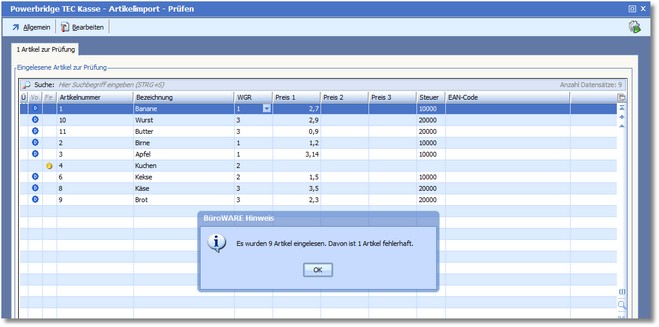 5. [F9] oder startet den Import der Artikelstammdaten.