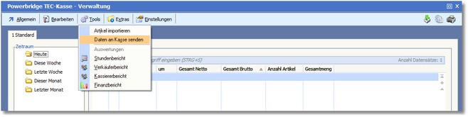 1. Klicken Sie mit der Maus im in der Symbolleiste auf den Button: <Tools> und anschließend auf den Menüpunkt "Daten senden".