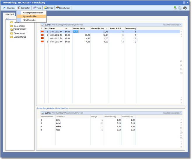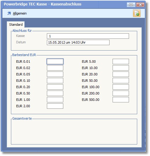 << Hier KLicken um eine Inhaltsübersicht anzuzeigen >> Navigation: BüroWARE Powerbridge > TEC-Kassenschnittstelle > Kassenabschluss |