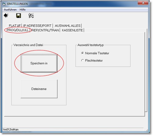 4. In der Karteikarte "PROG/DLL/ULL" legen Sie bei <Speichern in> den Ordner fest, in dem alle Stammdaten (z.B. Artikel, Bontexte etc.) gespeichert werden.