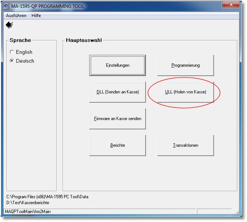 7. Gehen Sie nun zurück zur Hauptauswahl und klicken Sie auf den Button <ULL (Holen von Kasse)>.
