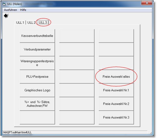 8. In der Karteikarte "ULL 3" klicken Sie auf den Button <Freie Auswahl alles>.