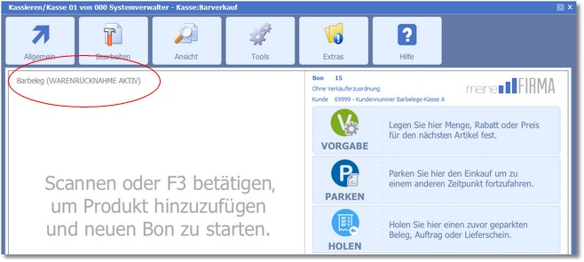 Bei der Warenrücknahme haben Sie die Auswahl zwischen zwei Möglichkeiten: Warenrücknahme über Artikelscan oder Warenrücknahme über BON.