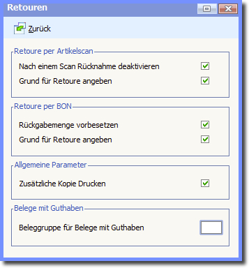 Diese Einstellungen wirken, wenn der Artikel per Scan zurück genommen wird.