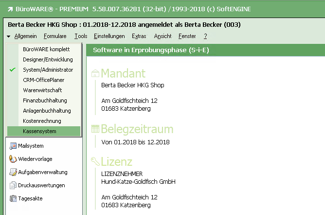 Um mit der Kasse beginnen zu können, muss man sich jedoch nicht durch die kompletten Einrichtungsmasken "hindurcharbeiten" - ein Kasseneinrichteassistent hilft und mit wenig Zeitaufwand ist die Kasse bereit für das erste Kassieren.