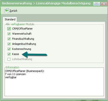 Schritt 1: Wir benötigen einen Bediener mit Kassen-Lizenz