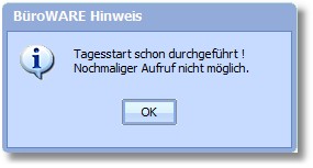 Der Tagesstart muss von Ihnen wiederholt werden, wenn Sie am gleichen Tag BüroWARE beenden und neu starten.